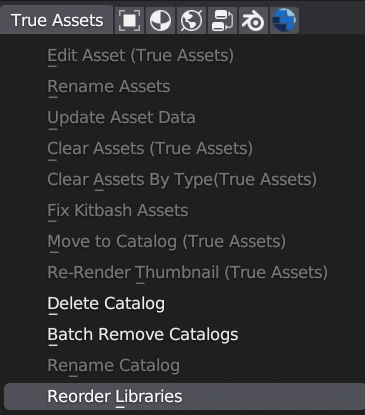 • Added the option to reorder Asset browser Libraries. Now you can rearrange the libraries according to your preference from the TA header menu. Find more information in Asset-Browser Utilities.